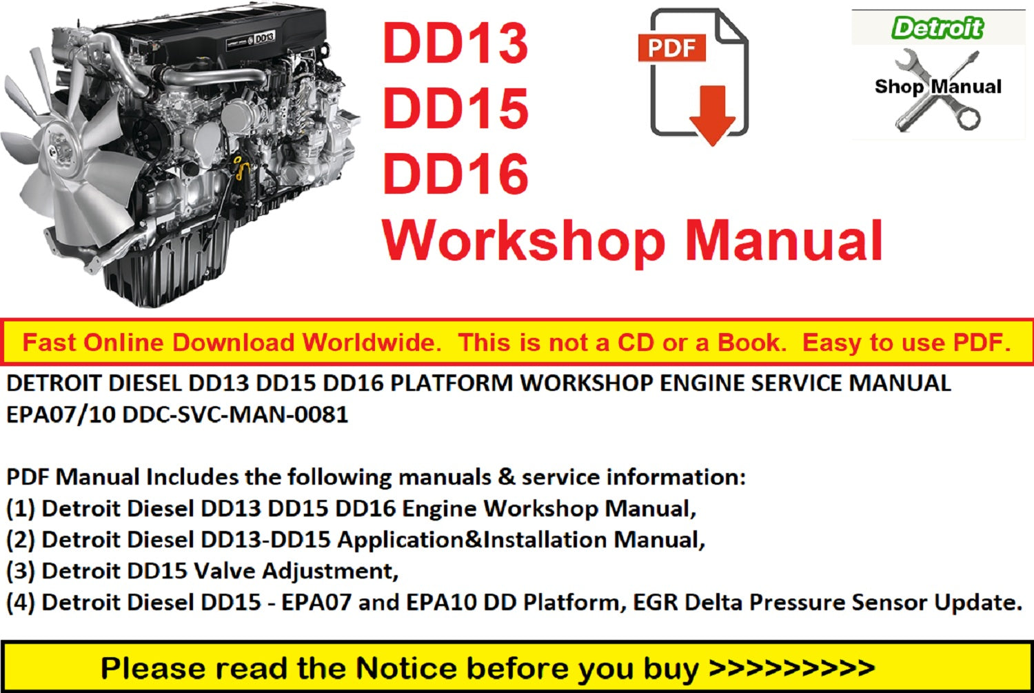 DETROIT DIESEL DD13 DD15 DD16 PLATFORM WORKSHOP ENGINE SERVICE MANUAL EPA07/10 DDC-SVC-MAN-0081