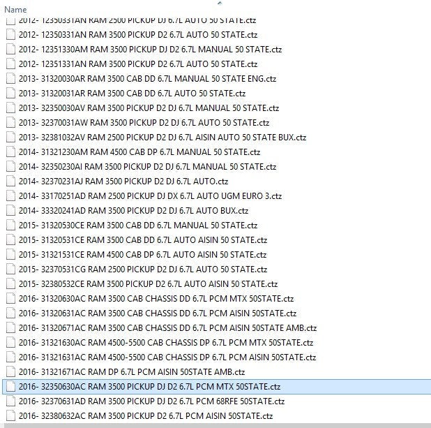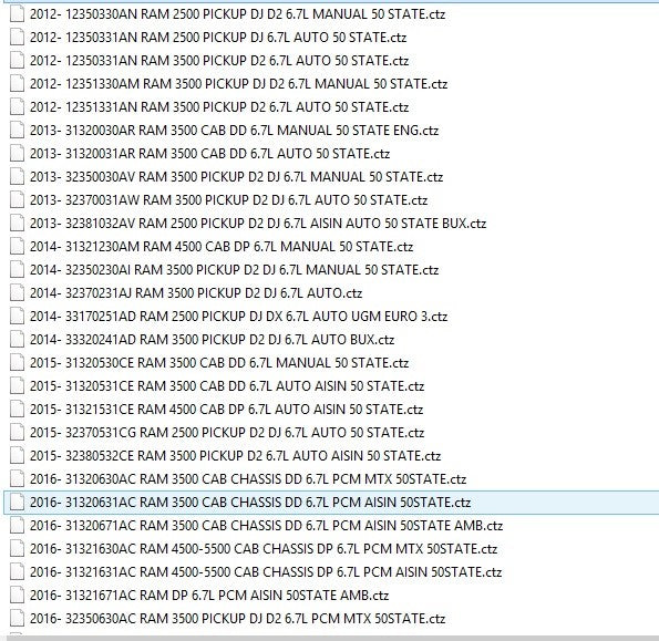 2016-31320671AC RAM 3500 CAB CHASSIS DD 6.7L PCM AISIN 50STATE AMB.ctz 2016-31321630AC RAM 4500-5500 CAB CHASSIS DP 6.7L PCM MTX 50STATE.ctz 2016-31321631AC RAM 4500-5500 CAB CHASSIS DP 6.7L PCM AISIN 50STATE.ctz 2016-31321671AC RAM DP 6.7L PCM AISIN 50STATE AMB.ctz