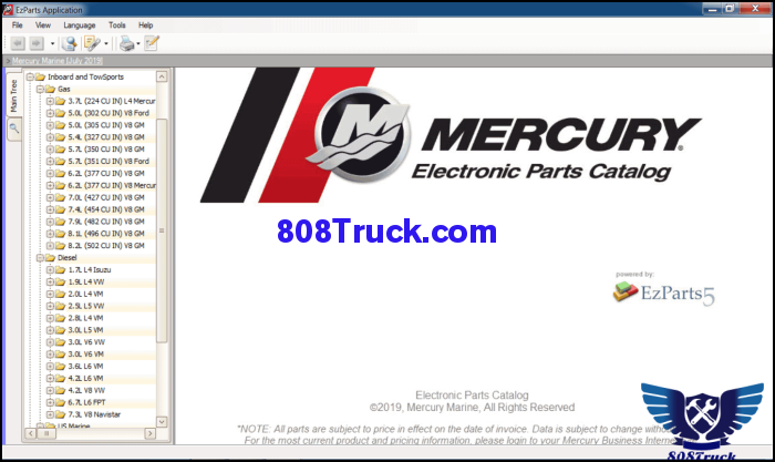 Original Spare Parts Catalog MERCURY Marine contains the catalogue of details for boats and motors of this firm. The spare parts catalog Mercury Midas very simple in installation and work, , occupies on the Winchester of all 14 Gb, language English. There is a search on model, year and capacities, a search of details under the name and number, a custom-made sheet.