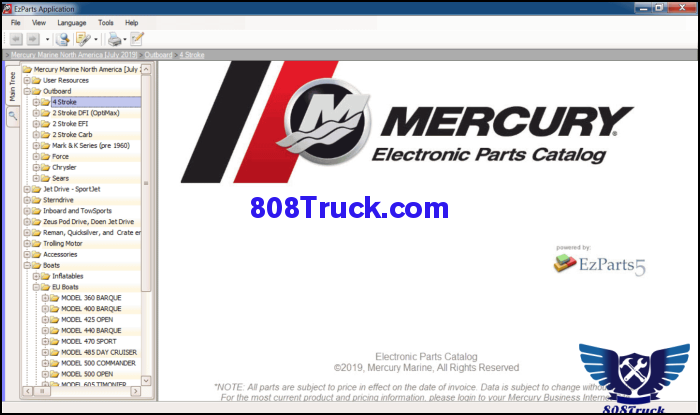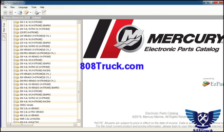 Original Spare Parts Catalog MERCURY Marine contains the catalogue of details for boats and motors of this firm. The spare parts catalog Mercury Midas very simple in installation and work, , occupies on the Winchester of all 10 Gb, language English. There is a search on model, year and capacities, a search of details under the name and number, a custom-made sheet.