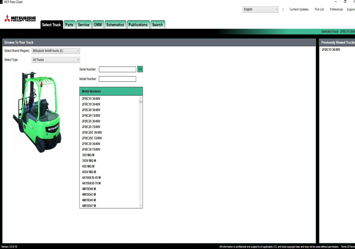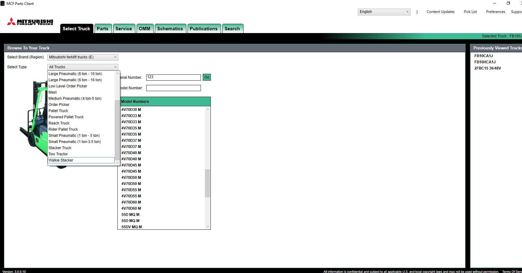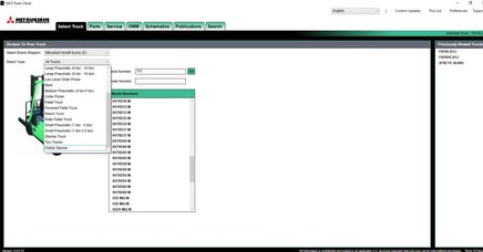 The interface of the program Mitsubishi ForkLift very simple and convenient is a search for models, serial numbers, the list of applicability of a detail as the program contains service bulletins and service manuals.