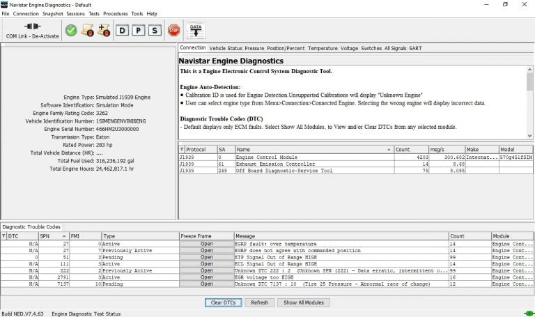 Navistar Engine Diagnostics is a diagnostic and programming service tool for Navistar Engines. A full-featured PC application, Navistar Engine Diagnostics is designed to meet the wide range of diagnostic challenges of servicing a mixed truck fleet. Coverage includes all J1939 International electronic engine systems. It allows you to monitor the control system, retrieve diagnostic trouble codes (DTC), change parameters, view and graph engine data, and run specialized service bay testing on all engine and aftertreatment systems. The application also features period updates, ensuring you the most up-to-date coverage.