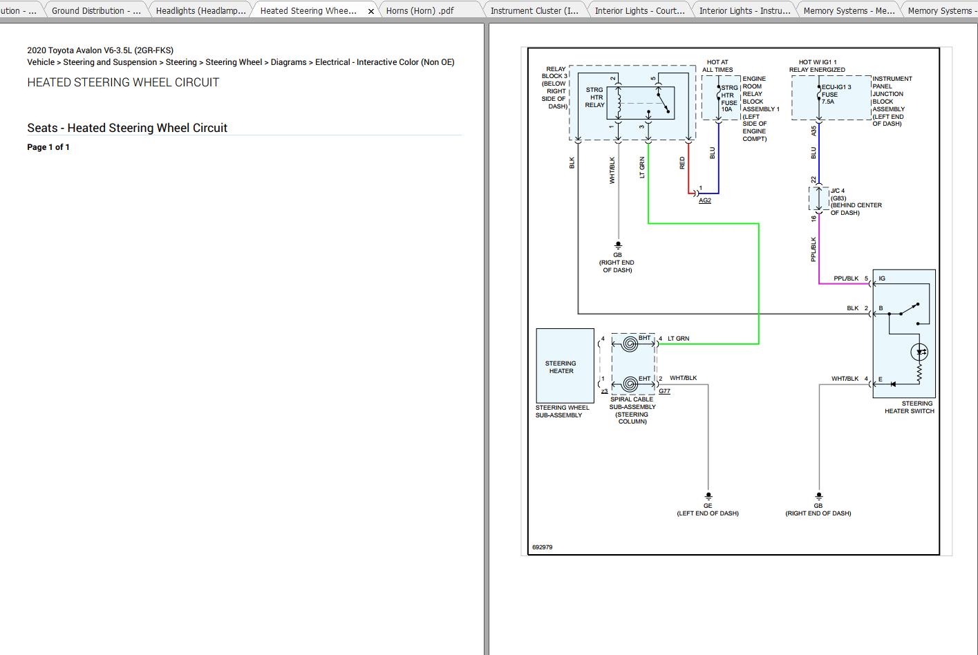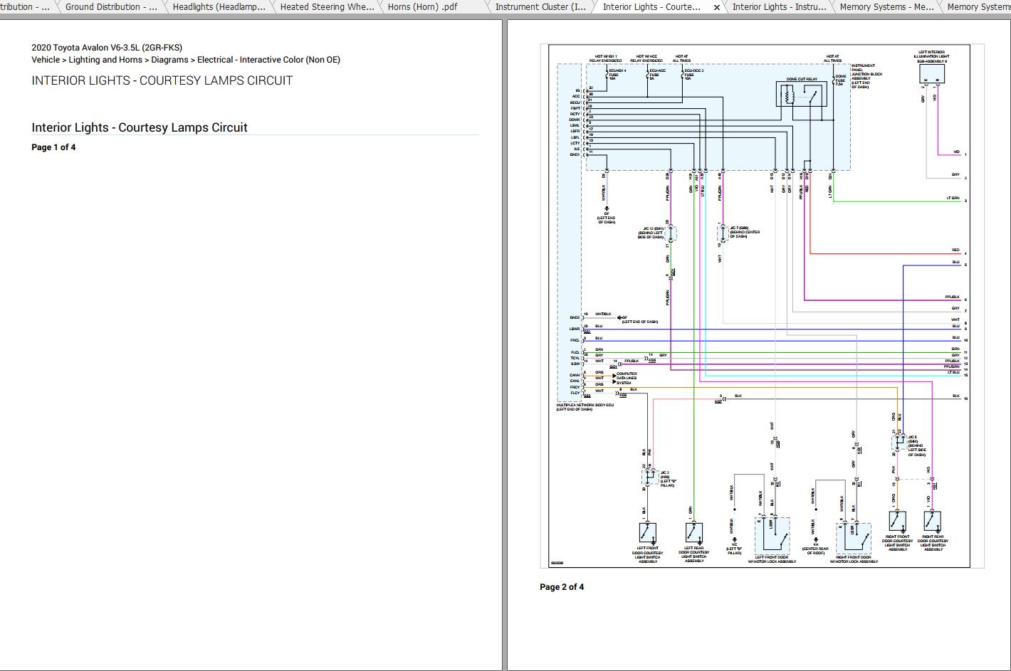 Toyota Avalon 2020 V6-3.5L (2GR-FKS) Electrical Wiring Diagrams